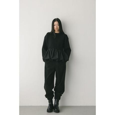 WHT:モデル身長168cm(FREEサイズ着用)BLK,GRY:モデル身長172cm(FREEサイズ着用)裾にシャツ生地をドッキングし、バルーンシルエットに仕上げたデザインニット。異素材の組み合わせがメリハリをプラスし、一枚でレイヤードしたような着こなしを演出します。ニットの柔らかな表情と布帛のハリ感がバランスよく調和し、シンプルなスタイリングにも新鮮さをプラス。コンパクトな丈感でボトムを選ばず、パンツやスカートに合わせてもバランスよく決まります。コーディネートに立体感を与えてくれる存在感のあるアイテムです。ストレッチあり(ニット部分)、透け感なし。【お手入れ方法】手洗い可