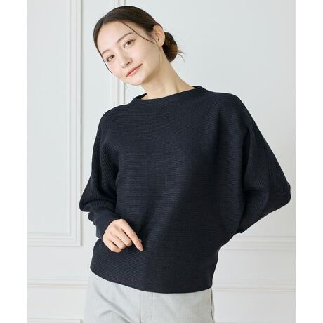 ■デザイン肌をより明るく華やかにみせてくれるラメ入りの糸でしっかりと表面感のある横リブ編地で編みたてた、シンプルながらもデザイン性のあるニットプルオーバー。シーンを選ばずお召しいただけるようルーズ過ぎないシルエットにこだわり、身頃と切り替えずに編みたてたドルマンスリーブは、二の腕や体型をさりげなくカバーしてくれるのも魅力です。肩回りはほどよくゆったりとリラクシーに、裾は絞ることでシルエットにメリハリを演出。袖口は細かいリブ編地で切り替えることで、たくし上げた時に落ちてきにくい設計にしました。身頃から編み続いた品のあるボトルネックと、切替えなしの裾デザインですっきりとした印象を与えます。■素材カシミヤのような柔らかさと温もりがあることから、通称カシミヤタッチとも呼ばれている糸をベースにラメを引き揃えて編みたてました。ラメ糸を表面に出しラメを強調する編み方もありますが、今回はベースの糸とラメ糸を一緒に編みたてることで、ラメのギラつきを適度に抑え上品で華やかな仕上がりとなっています。・水洗い可■サンプル撮影商品画像の商品はサンプルです。実際の商品とはサイズや色味、素材、デザイン等の仕様が若干変更になる場合がございます。■照明の関係により、実際の製品とは色味が違って見える場合があります。またパソコン・スマートフォンなどの環境により、若干製品と画像のカラーが異なる場合もございます。■サイズ表記はあくまで目安となります。