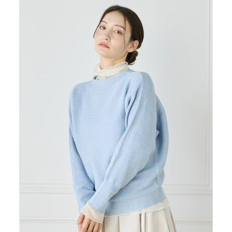 ■デザイン肌をより明るく華やかにみせてくれるラメ入りの糸でしっかりと表面感のある横リブ編地で編みたてた、シンプルながらもデザイン性のあるニットプルオーバー。シーンを選ばずお召しいただけるようルーズ過ぎないシルエットにこだわり、身頃と切り替えずに編みたてたドルマンスリーブは、二の腕や体型をさりげなくカバーしてくれるのも魅力です。肩回りはほどよくゆったりとリラクシーに、裾は絞ることでシルエットにメリハリを演出。袖口は細かいリブ編地で切り替えることで、たくし上げた時に落ちてきにくい設計にしました。身頃から編み続いた品のあるボトルネックと、切替えなしの裾デザインですっきりとした印象を与えます。■素材カシミヤのような柔らかさと温もりがあることから、通称カシミヤタッチとも呼ばれている糸をベースにラメを引き揃えて編みたてました。ラメ糸を表面に出しラメを強調する編み方もありますが、今回はベースの糸とラメ糸を一緒に編みたてることで、ラメのギラつきを適度に抑え上品で華やかな仕上がりとなっています。・水洗い可■サンプル撮影商品画像の商品はサンプルです。実際の商品とはサイズや色味、素材、デザイン等の仕様が若干変更になる場合がございます。■照明の関係により、実際の製品とは色味が違って見える場合があります。またパソコン・スマートフォンなどの環境により、若干製品と画像のカラーが異なる場合もございます。■サイズ表記はあくまで目安となります。