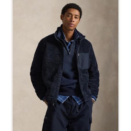 質感のあるメッシュ生地を内側に接合した、ハイパイルのフリースで仕立てたジャケット。長持ちしやすい織り地の切り替えにより、ラギッドでアウトドアウェア風のルックを演出。・織り地の切り替えをあしらったモックネック / フルジップフロント・長袖 / カフスにストレッチの効いた縁飾り・左胸に織り地の切り替えが付いたジップポケット / フロントウエストにジップポケット2つ・裾にストレッチの効いた縁飾り・胸ポケットにシグネチャーのポニー刺繍。・モデル身長185cm、着用サイズM※商品の色味は、光のあたり具合など諸条件により色感が多少異なって見える場合がございますので予めご了承下さい。 【素材】・表側:ポリエステル 100% 裏側:綿 60%、ポリエステル 40% 別布部分:ナイロン 100%【生産国】カンボジア