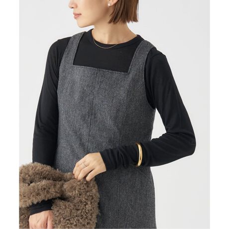 シアー感のある素材が今年らしく、レイヤードした時に襟ぐりから少し見えるように少し詰まったデザインでお作りしております。
