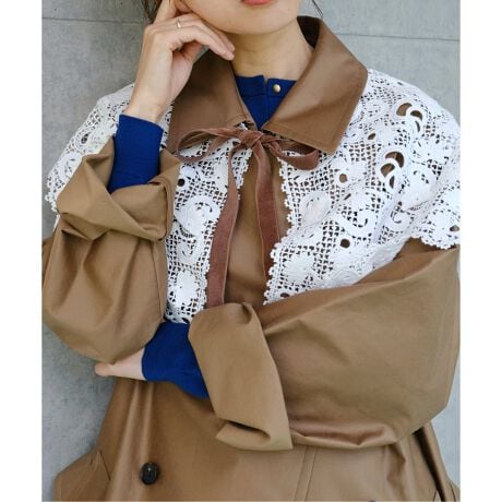 ヴィンテージのクロシェレースを参考に柄を出した、IENAオリジナルレースを使用したつけ襟。