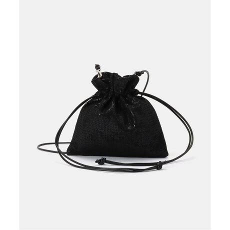 煌めくスパンコールとメッシュの組み合わせが新鮮な巾着バッグ。