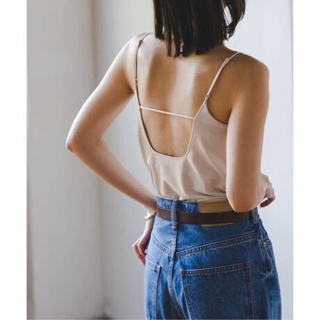 今シーズンは背中開きにラインを施した、透けたときのデザイン性にもこだわった仕様に。シアーアイテムが増える季節にこのキャミを合わせるだけでスタイリングにこだわりを感じさせてくれる一品です。