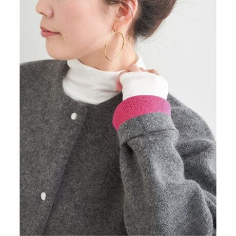 表側は毛足が長めでふわふわとした素材、裏側の肌に触れる面はスムースなポリエステル糸で、ニットがチクチクしやすい方にぜひお試しいただきたいアイテムです。