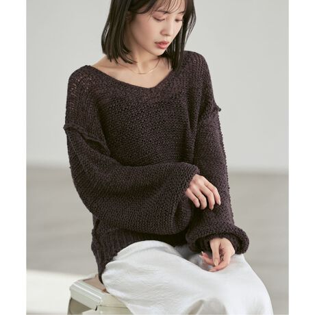 発色の良いこだわりの糸を使用しざっくりと編んだニットプルオーバー。
