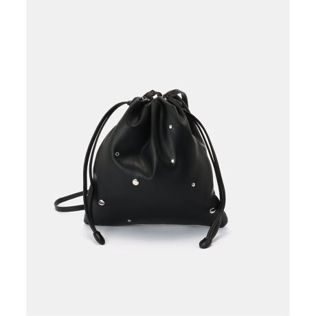 フェイクレザーにスタッズがアクセントになる巾着バッグ。
