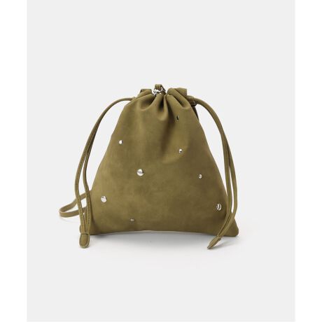 シンプルな巾着バッグにスタッズをあしらったデザインです。手持ちとしてもショルダーバッグとしても使える2way仕様でショルダーストラップは取り外しができ、様々なコーディネートに合わせやすくシーズンレスで使用できます。