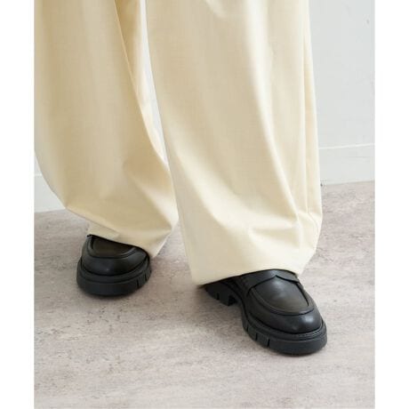 厚めのソールでエッジが効いており、シンプルで合わせやすくありながら新鮮なムードに。