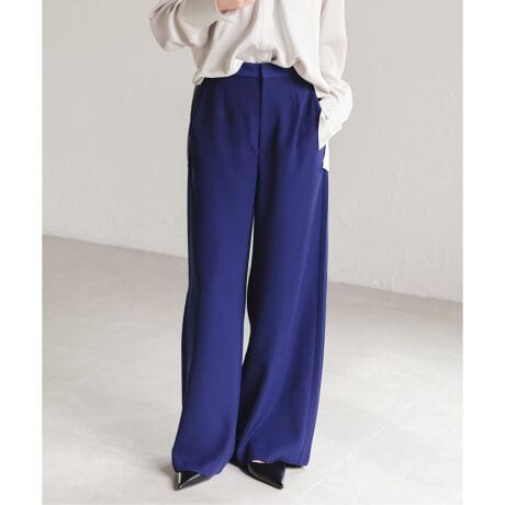スポーティーな印象のラインパンツを、同素材のピンタックでサイドラインを表現したことで女性らしく仕上げた一品。