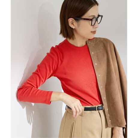 目面がすっきりと美しく、レイヤードスタイルはもちろん、1枚着としてもきちんと感があり、オンシーンにも活躍する万能な一着です。