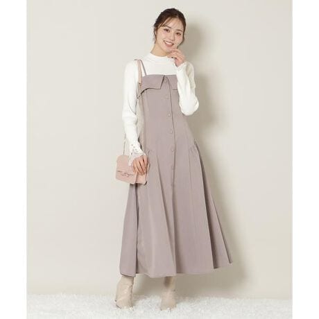 ギャザー切り替えが大人可愛いきれいめなキャミワンピース【Design】・インナー次第でいろんなコーディネートで着回しできるキャミワンピース。・ギャザー切り替えでふんわりとしたシルエットに。・背中部分は伸縮性のあるシャーリング仕様になっており、後ろのリボンでウエストサイズを調整できます!・ショルダーはアジャスター付きで、長さ調整が可能です。・左脇ファスナー仕様。【Fabic】・上品な質感のある生地を使用。・程よいハリ感のある裏地付き。・ピンク、モカ、チャコールグレー、ブラックの4色展開となります。【Care】ドライクリーニング
