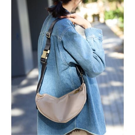 弱撥水性のあるカジュアルなナイロン素材に、金具のゴールド使いが女性らしいボディバッグ。