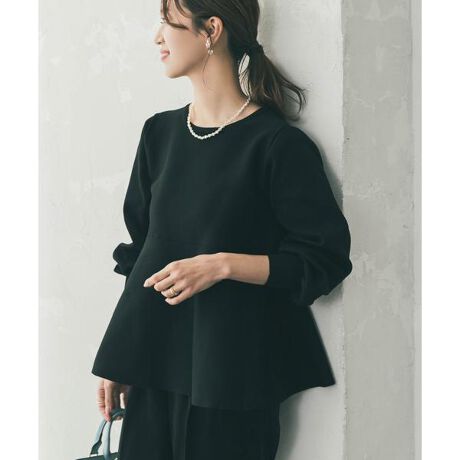 編み組織に変化をつけることで生まれる、ペプラムフレアシルエットが女性らしいニットプルオーバー。
