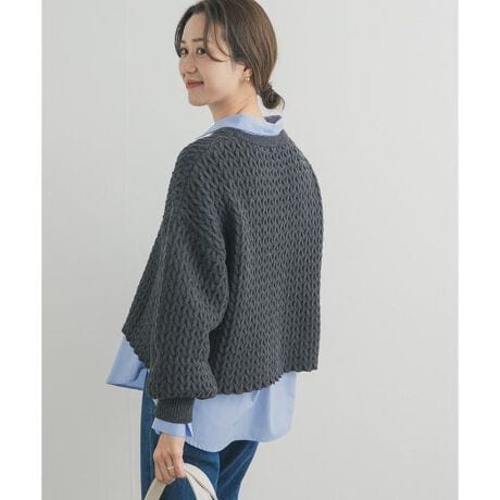 凹凸のある編み地が奥行きを生み、シンプルな着こなしでも主役になるデザインに仕上げました。