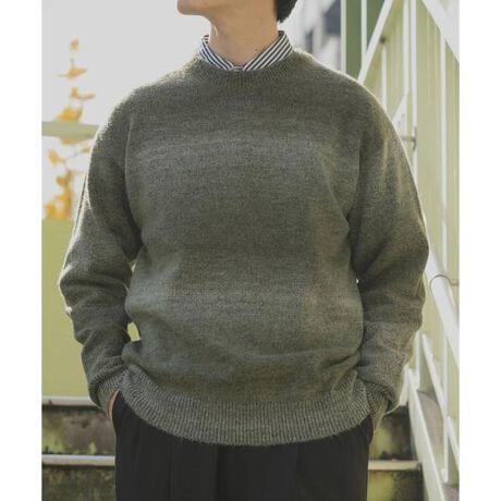 複数の色が混ざり合うスペースダイ糸を使用した、奥行きのある表情が魅力のニットプルオーバー。温かみのあるグラデーションが、着るだけで洗練された雰囲気を演出します。編み地の変化により、シンプルながらも主役級の存在感に。首元はベーシックなクルーネック仕様で、幅広いスタイリングに対応します。袖口と裾には程よいフィット感のリブ編みを施し、シルエットを美しくキープ。一枚着はもちろん、シャツやカットソーとのレイヤードにも取り入れやすく、デイリーに活躍する一着です。
