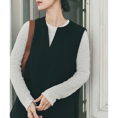 きれいめなサロペットやジャケットのインナーとして活躍し、オケージョンシーンにも対応します。