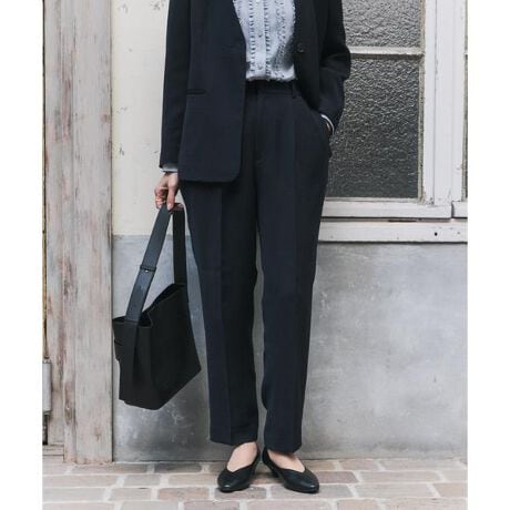 フロントはワンタックを施した立体的な仕立てで、腰回りを自然にカバー。