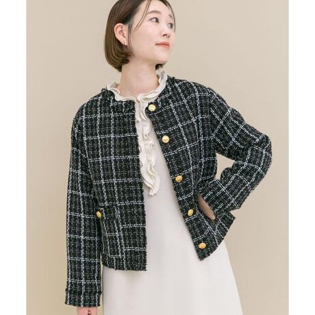 【一枚できちんと見えが叶うノーカラーツイード】
