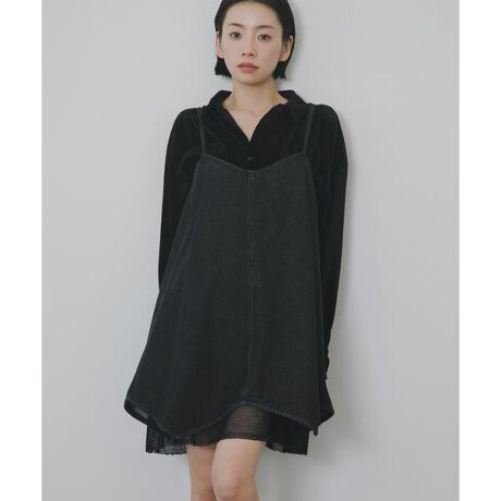イレヘムな裾にメッシュがレイヤードされたデニムキャミワンピース。動くたびに表情が変わるデザインが魅力的です。バックスタイルも深めのVネックに仕上げることで抜け感を出しました。アジャスター付きなので身長に合わせて調整も可能な点や、レイヤードアイテム次第で様々な着こなしが楽しめるところも嬉しいポイントです。