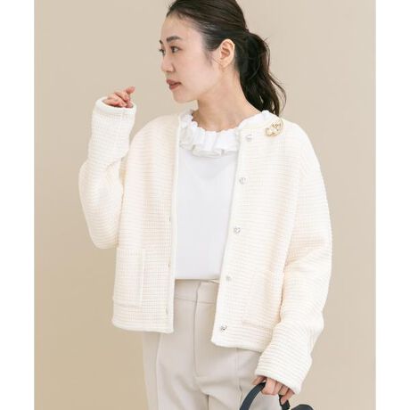カーディガン感覚で気軽に羽織れる、ツイード風ニットジャケット。