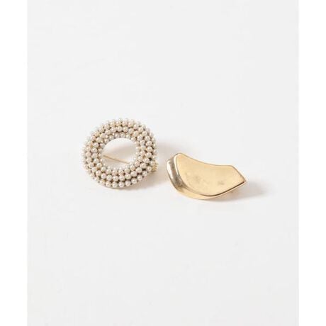 小ぶりなパールをあしらったサークルモチーフとニュアンス感のあるゴールドブローチのセット。卒入園やフォーマルな席に、ジャケットやワンピースの胸元にワンポイント合わせるだけで程よい華やさを演出します。主張しすぎないデザインで取り入れやすいのが魅力的。