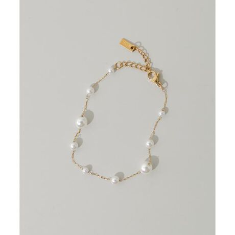 華奢なチェーンに、大きさの異なるパールをランダムに配置したブレスレット。