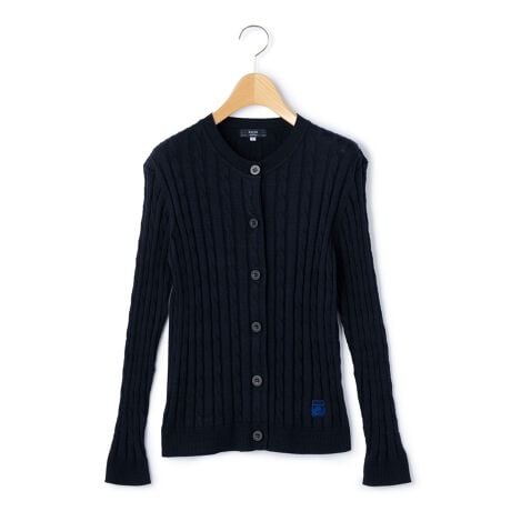 ブリティッシュトラディショナルを感じさせる、コットンニットカーディガン。ハイゲージのケーブルニットは、エレガントな雰囲気が漂います。やや短めの着丈、コンパクトなシルエットでモタつかず、すっきり着こなしていただけるのもポイント。アイコニックなエンブレム刺繍がアクセントを効かせます。