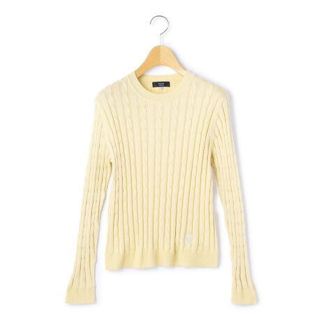 クラシカルかつエレガントなケーブル編みのクルーネックニットプルオーバー。スタイリングに差し色効果を発揮してくれるニットアイテムです。ブリティッシュトラディショナルを感じさせるエンブレム刺繍が重厚感漂うワンポイントに。ハイゲージのコットンニット素材で、ロングシーズン着回し可能です。