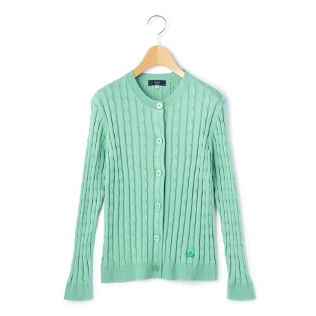 ブリティッシュトラディショナルを感じさせる、コットンニットカーディガン。ハイゲージのケーブルニットは、エレガントな雰囲気が漂います。やや短めの着丈、コンパクトなシルエットでモタつかず、すっきり着こなしていただけるのもポイント。アイコニックなエンブレム刺繍がアクセントを効かせます。