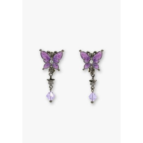 程よいボリューム感が春の装いを華やかに格上げしてくれるイヤリング。<br>ラメをたっぷり使用した紫の蝶は特別感がありANNA SUIらしい印象です。