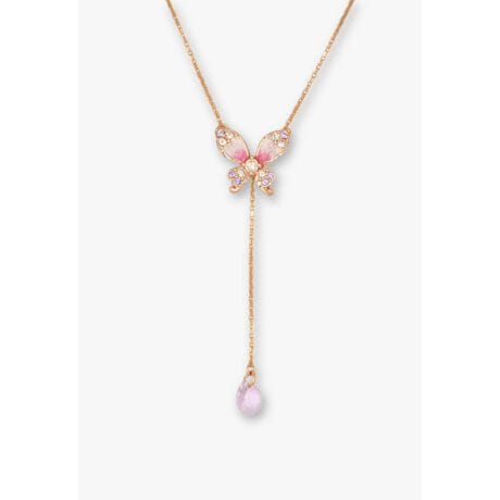 ANNA SUIのシグネチャーモチーフである蝶を、春らしい桜の花びらをイメージしたフォルムで表現したネックレス。