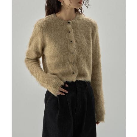 etoll. エトル モヘアタッチの柔らかな起毛糸で仕立てた、クロップドニットカーディガン。