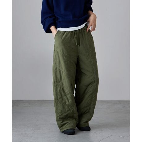 キャッチーなデザインでスタイリング映えする、立体的なキルティング素材で仕上げたワイドパンツ。