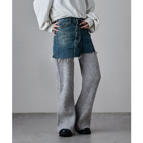 リブニットフレアパンツ