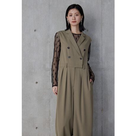 シャープなテーラーカラーデザインにハイウエスト切り替えがスタイル良く魅せてくれます。