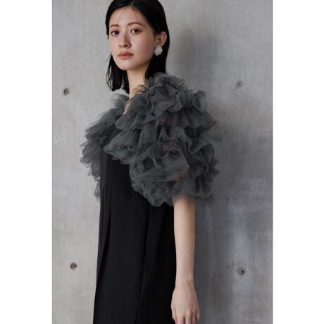 niana ニアナ 大小のフリルを贅沢に重ねたショート丈チュールボレロ。
