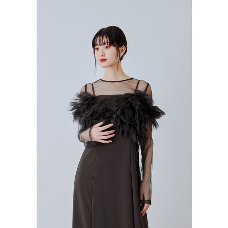 柔らかいチュールでたっぷりフリルデザインを贅沢にあしらったベスト。