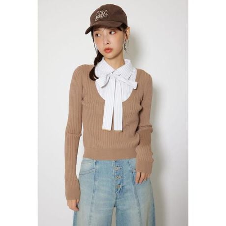 【マニッシュ×レディーが叶うドッキングKnitTOPS】■ポイント大人気だったまるでシャツのうえにニットをレイヤードしているようなニットトップスが長袖になって新登場。その日の気分やコーディネートに合わせてリボンタイは取り外し可能なのも嬉しいポイントです。■ディテールボディーラインが綺麗に見えるようほどよい巾間のリブ編みを採用。ストレスフリーな着心地、程よいフィット感を拘りました。■スタイリングミニスカート合わせでマニッシュスタイリングやクラシカルなパンツと合わせてオフィスコーデにもピッタリです■生地透け感:なし裏 地:なし伸縮性:あり光沢感:なし厚 さ:中肉■商品のお気に入り登録お気に入りアイテムの再入荷・在庫1点などの通知を受け取ることができます。[注意事項]※画像の商品はサンプルです。実際の商品と仕様、加工が若干異なる場合があります。※画像の商品は光の照射や角度、お使いのモニター環境により、実物と色味が異なる場合がございます。※着用、お取り扱いの際は、アテンションタグをご確認ください。