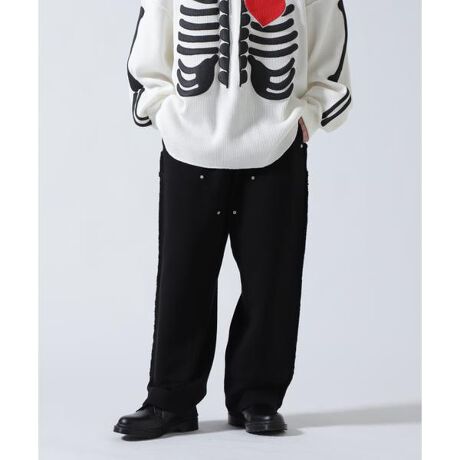 [型番:7856110306]膝部分に当て布を施した、デザイン性の高いワイドスウェットパンツ。シルエットは程よくルーズなワイドフィットで、リラックス感がありながらも存在感のある一本に仕上げています。膝の切り替えデザインがシンプルなスウェットにアクセントをプラスし、スタイリングの主役としても活躍。デイリーからストリートスタイルまで幅広く取り入れやすく、トップスを選ばない汎用性の高さも魅力です。