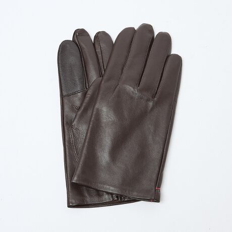 [型番:00513069000]しっとりとした質感の羊革を使用。使い込むごとに手に馴染み、本革ならではの経年変化が楽しめます。側親指と人差し指にはタッチパネル操作可能な、導電革を使用しています。裏地は薄いマイクロボアを使用しています。すっきりとしたシルエットは崩さず、暖かさを保っています。