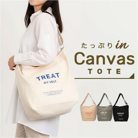 【デイリーに活躍】丈夫なキャンバス素材で大容量、毎日使いたくなるTREATショルダー。【しっかり入る収納力】大きめサイズなので、教科書や着替えなどがすっぽり入る大容量◎【軽やかキャンバス地】コットン100%の丈夫なキャンバス素材だから毎日使っても安心〇【両手が空いてストレスフリー】長さ調節可能なショルダーベルトで、肩掛けも斜め掛けもできて便利♪【ワンタッチ開閉】開口部は片手でサッと開閉できるマグネットボタン式。大きく開いて、出し入れラクラク。【マチ広でたっぷり入る】底マチがゆとりのある設計で、お弁当箱や水筒も安心して持ち運べる。【コーデのアクセントに】フロントのビッグロゴがアクセント!カジュアルスタイルにこなれ感をプラスしてくれる!