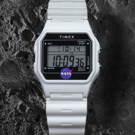ひと目でそれとわかるNASAのシンボルマークが液晶周りにあしらわれ、ストラップ部分にはNASAの正式名称が印字され、ループに「アルテミス計画」のロゴが入り、特別なモデルあることが分かります。
