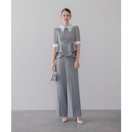 レースカラーペプラムブラウスパンツセットアップドレス クラシカルな気品