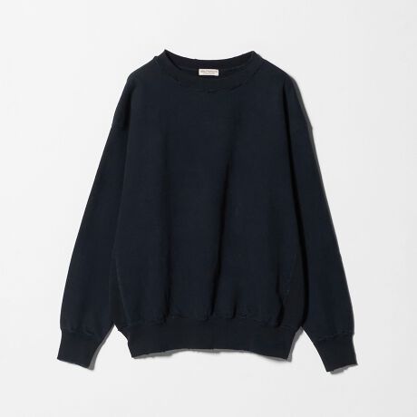 微起毛感のあるピーチスキン加工を施し、柔らかな表情に仕上げたクルーネックスウェット。