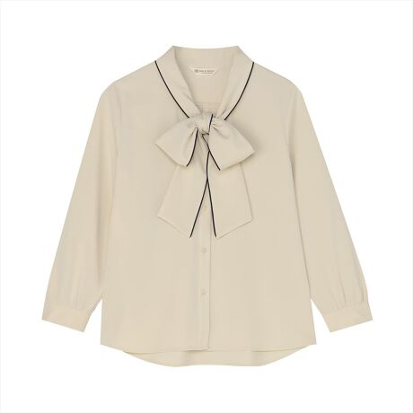 配色リボンタイが衿元に彩りを添え、華やかさを演出してくれる一枚。オケージョン利用にも◎なデザイン。
