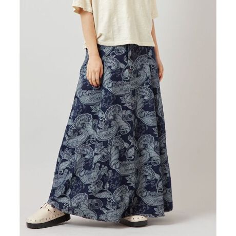 [型番:CCP-6111-2025]上品な立体感が魅力のデニムスカート。手織りの高級カーペット「段通」をイメージした繊細な柄のデザイン。ウエストのタックでボリュームがありながらもスッキリ見せ。長く使える万能アイテムです。
