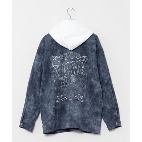 [型番:4CG-6108-2025]太うねコーデュロイ生地を使用したメンズジャケット。洗い加工風のプリントでヴィンテージライクな雰囲気に仕上げました。ポケットと背中の刺しゅうがアクセント。取り外し可能なフード付きで、気温やスタイルに合わせた着こなしが楽しめます。2WAY着用可能