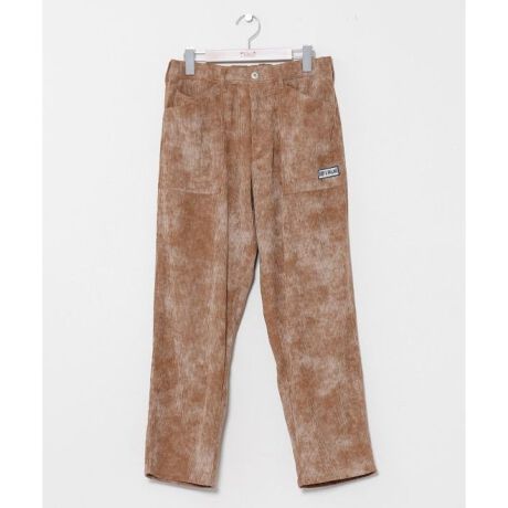 [型番:4CG-6107-2025]太うねコーデュロイ生地を使用したメンズパンツ。洗い加工風のプリントがヴィンテージ感を演出します。まだ肌寒い初春から着用できる程よい厚みで、ポケットに施したワッペンがさりげないポイントです。