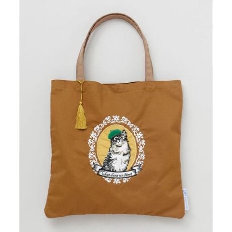 [型番:LCEP6104-2025]アンティークの猫のカメオをモチーフにしたトートバッグ。ベレー帽をかぶった猫は欧州航路オリジナルのユニークなデザイン。大判サイズで荷物もたっぷり入り、日常使いに便利。
